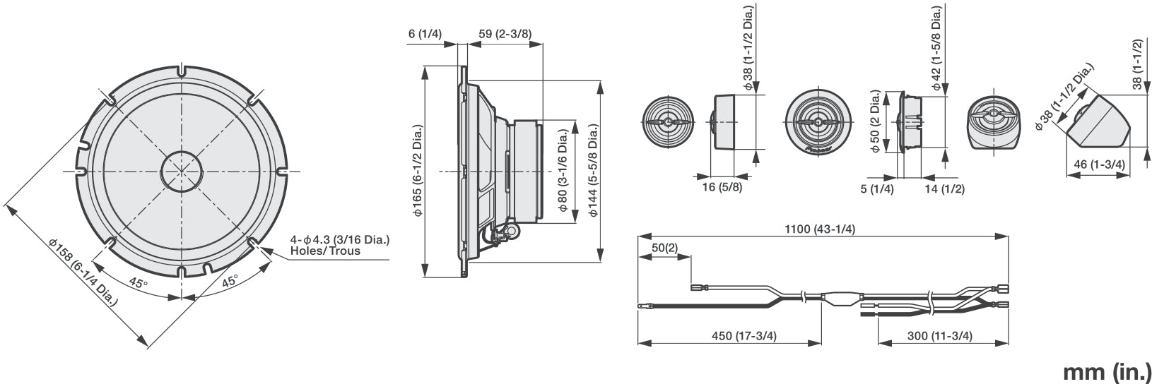 - Price is per set. ( 2 x 17 cm. speakers and 2 x tweeter )